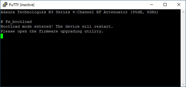 Enter bootloading mode by opening a serial connection to the device using a terminal program such as PuTTY.