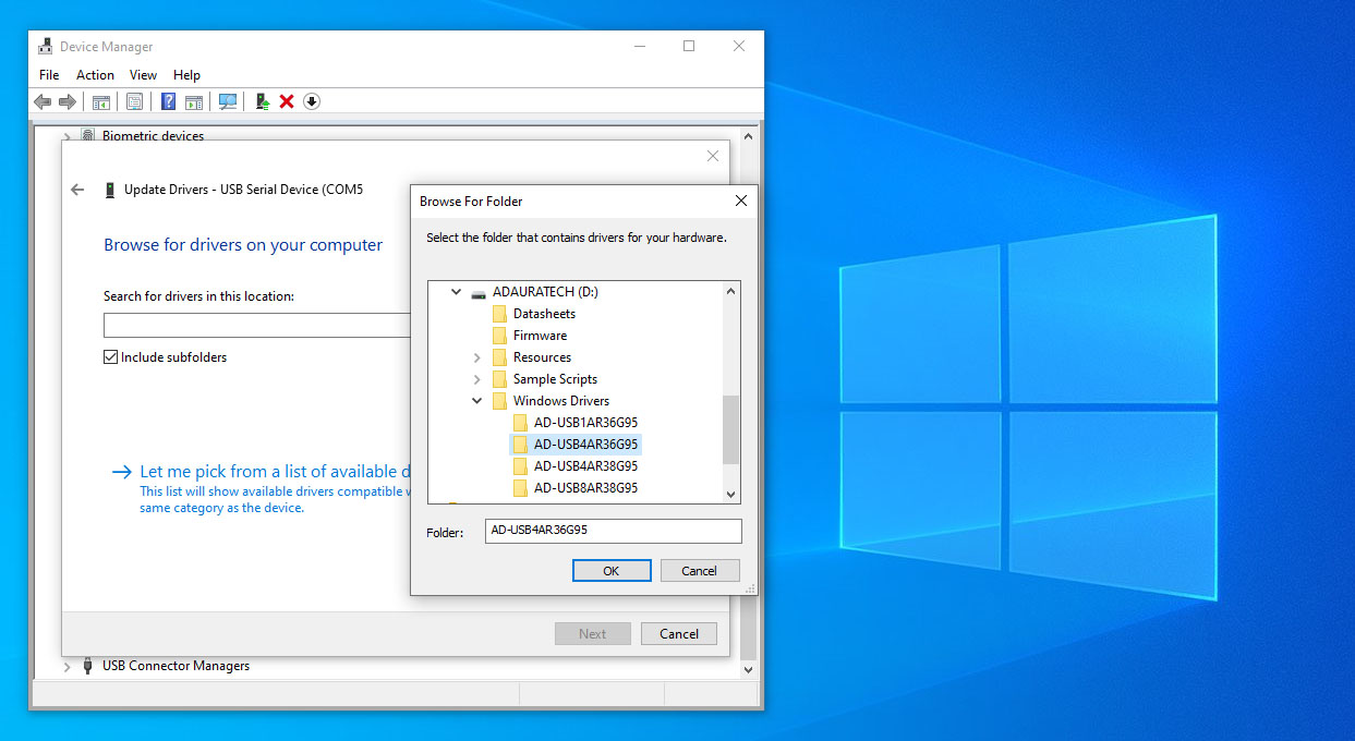 Navigate to and select the Windows Driver folder on your AdauraTech USB thumb drive.